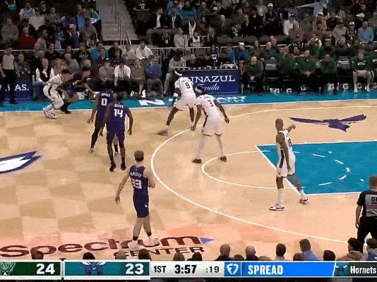 NBA常規(guī)賽,雄鹿對(duì)陣黃蜂的分線比賽正在進(jìn)行中。