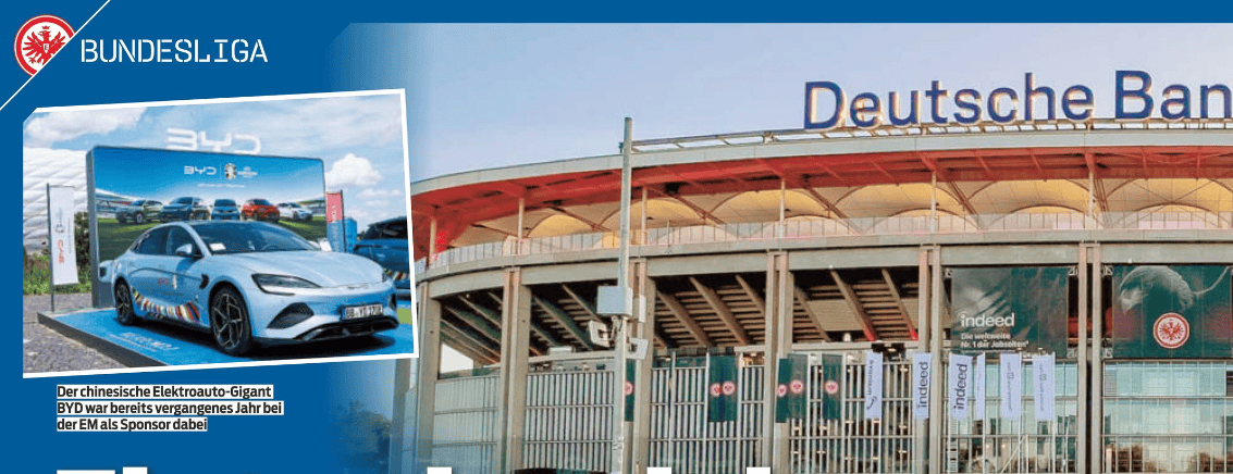 法蘭克福競技場與德意志銀行的主場冠名權(quán)合同將于合作七年后到期。德意志銀行自2020年起冠名其主場。雖然存在續(xù)約的可能性,但德意志銀行能否在競購戰(zhàn)中跟上比亞迪的步伐似乎值得懷疑。