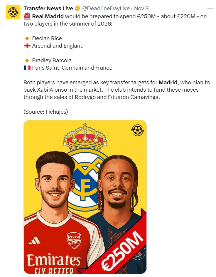 傳聞: 皇馬有意賴斯和巴爾科拉由levinso1 發(fā)表在皇馬專區(qū) https://bbs.hupu.com/realmadrid