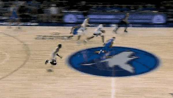 比賽的反擊第一節(jié),麥克丹尼爾斯前場(chǎng)搶斷,跳步反擊跳步上籃打進(jìn)2+1。上籃