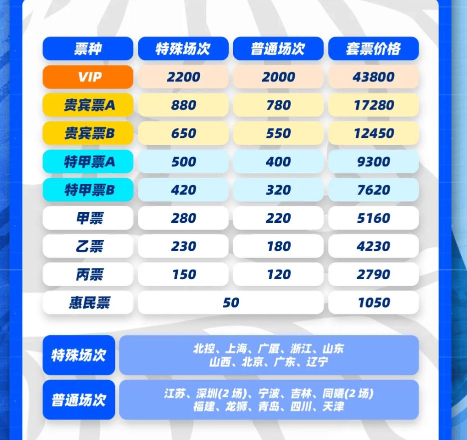 虎撲11月20日訊 今日新疆男籃公布新賽季票價:特殊場50-2200元&普通場50-2000元。