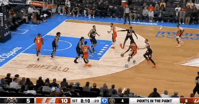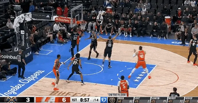 NBA常規(guī)賽,快船對陣掘金的攻約勾手比賽正在進(jìn)行中。