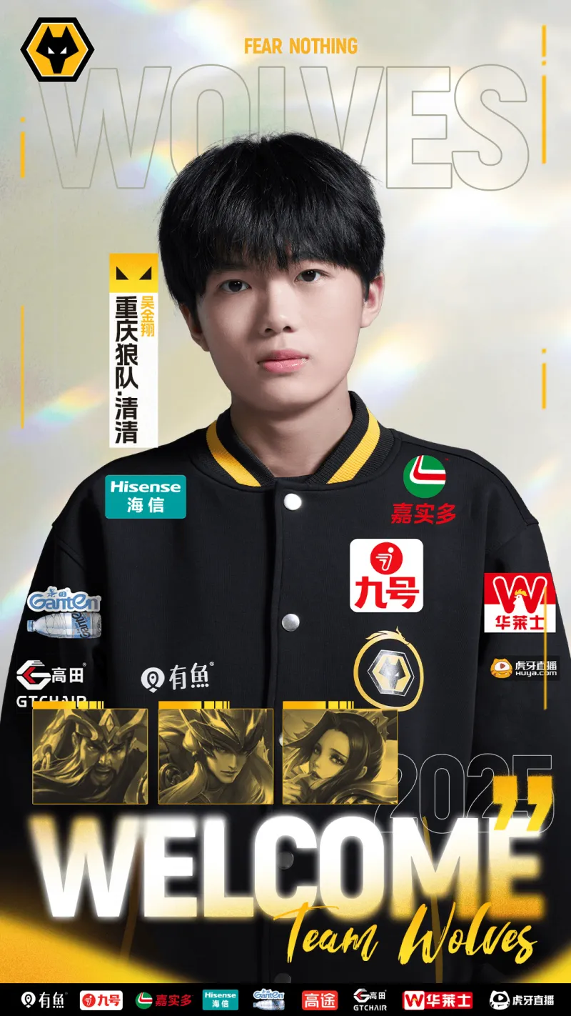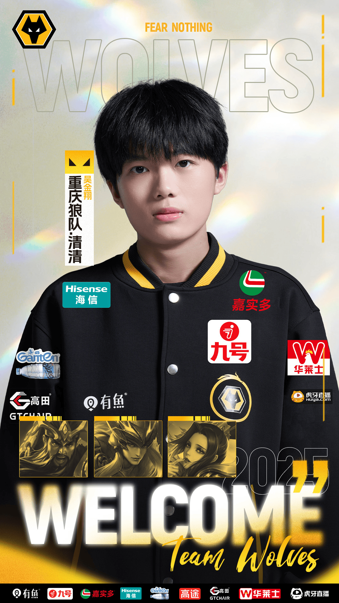 即日起,原廣州TTG 對(duì)抗路選手清清(吳金翔)現(xiàn)正式加入重慶狼隊(duì),今后將隨隊(duì)征戰(zhàn)接下來(lái)的職業(yè)賽事。