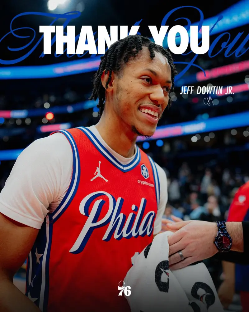 虎撲08月06日訊 76人官方更新X,曬出一張杰夫-道丁的致謝照片與球迷分享。