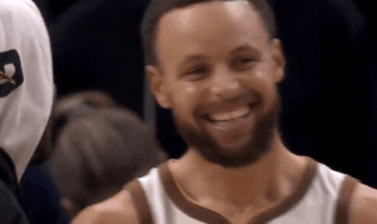 第四節(jié)比賽,庫(kù)里開(kāi)懷比賽還剩2分鐘庫(kù)里被替換下場(chǎng),場(chǎng)庫(kù)庫(kù)里在替補(bǔ)席開(kāi)懷大笑。大笑