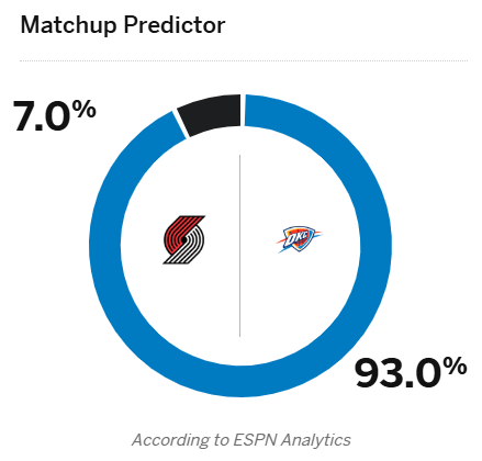 [流言板]ESPN預(yù)測(cè)明日比賽勝率:雷霆?jiǎng)俾矢哌_(dá)93%,開拓者勝率僅7%